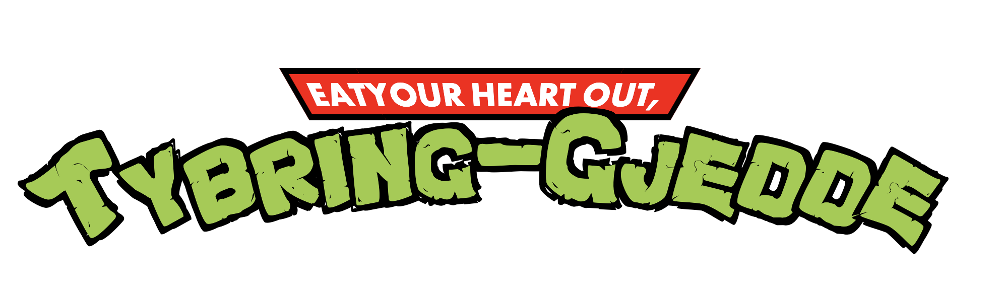 alt "Eat Your Heart Out, Tybring-Gjedde" utforma som ein Turtles-logo. (Ein kan synge teksten på Turtles-låta) "Eat Your Heart Out, Tybring-Gjedde" utforma som ein Turtles-logo. (Ein kan synge teksten på Turtles-låta)