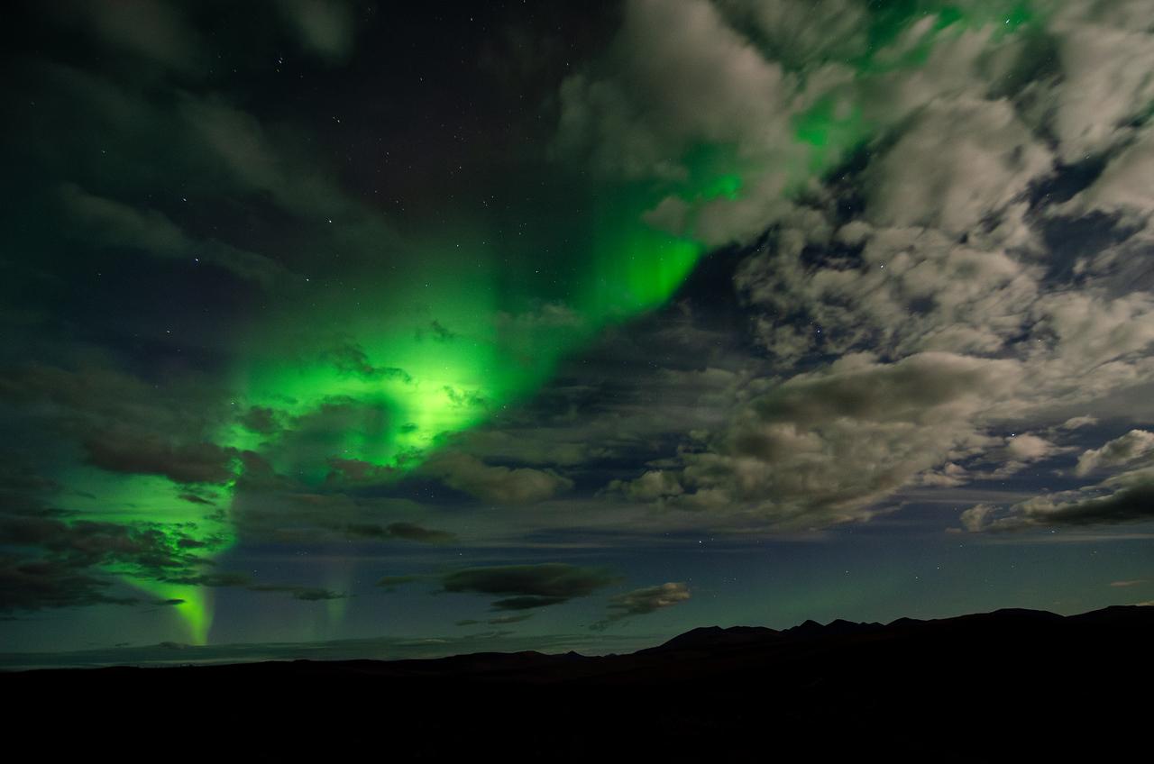 Aurora behind moonlit clouds in the White Mountains National Recreation Area, Alaska.