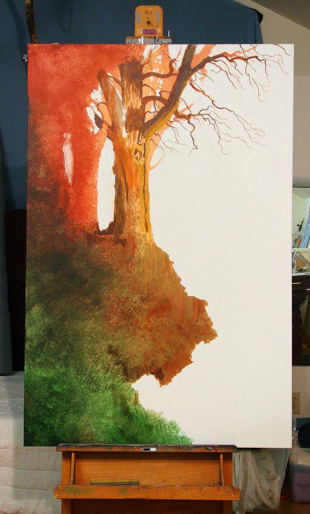 I’m often encouraged to share my process. Fortunately I did snap a photos of this painting along the way from the early stages of the underpainting as I worked out the details. 3/3