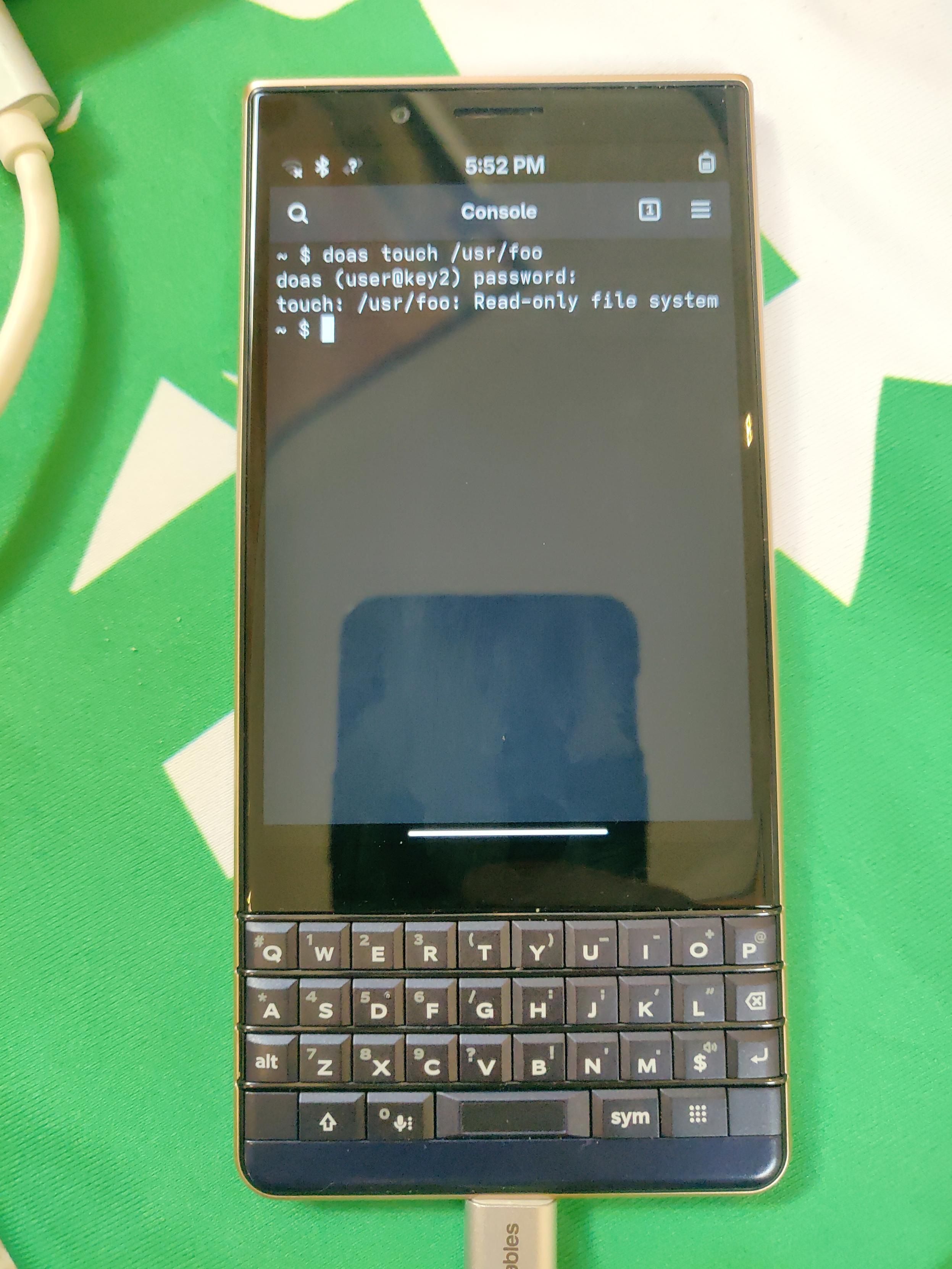 @sajattack and I are trying to boot immutable #postmarketos on his Blackberry Key2 at our #seagl2025 table 馃コ