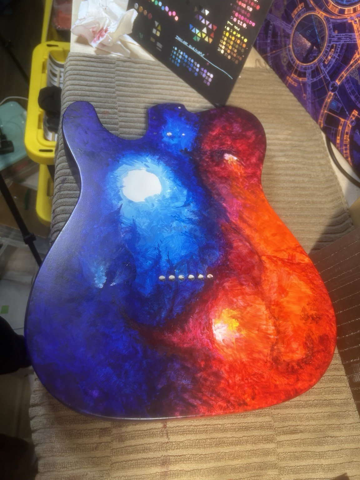 Here’s the front of the Tele all nebula’d up! @Curator #gearsquad #mastoart #guitar #painting #telecaster