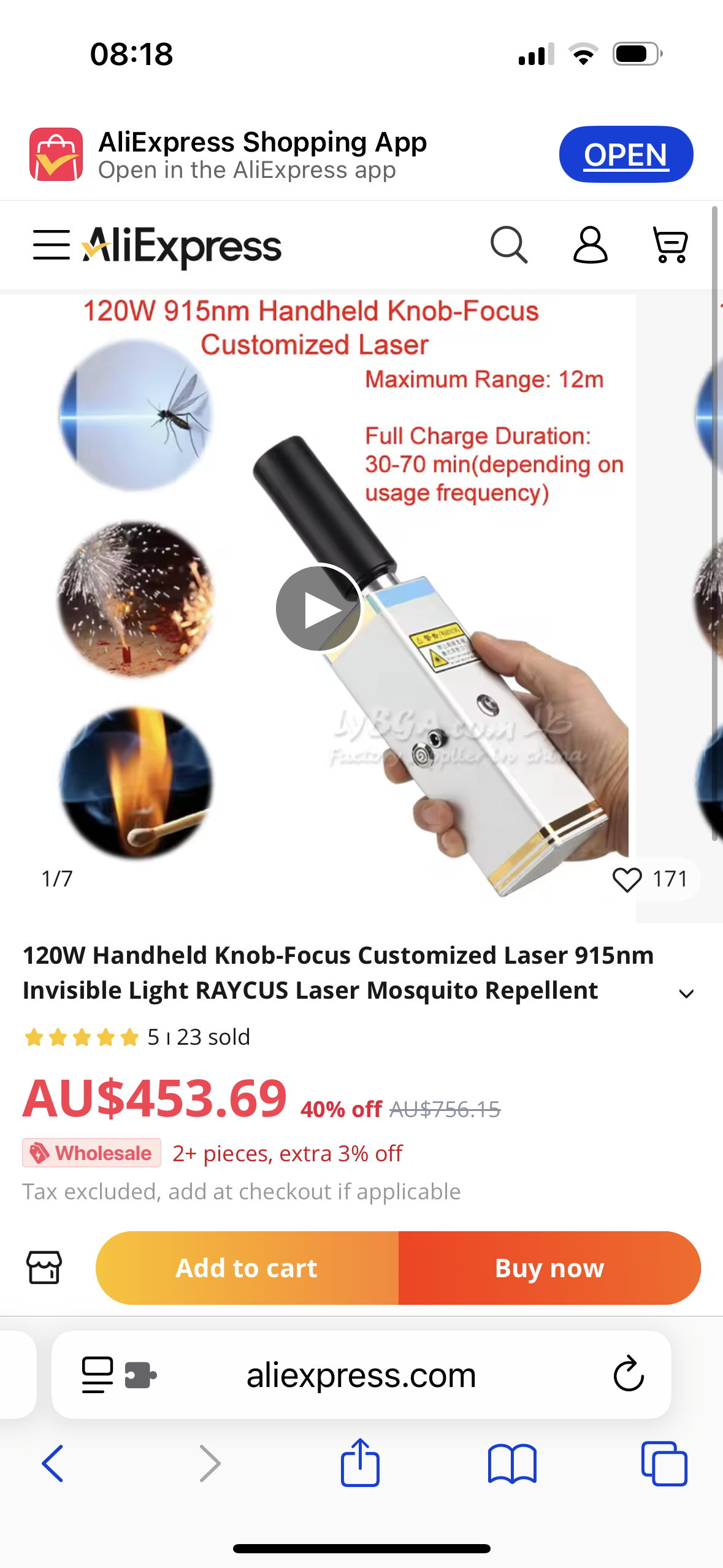 Today in things you can but probably shouldn’t buy from AliExpress: a hand-held 120W IR laser. Safety? Yes we heard that word once.