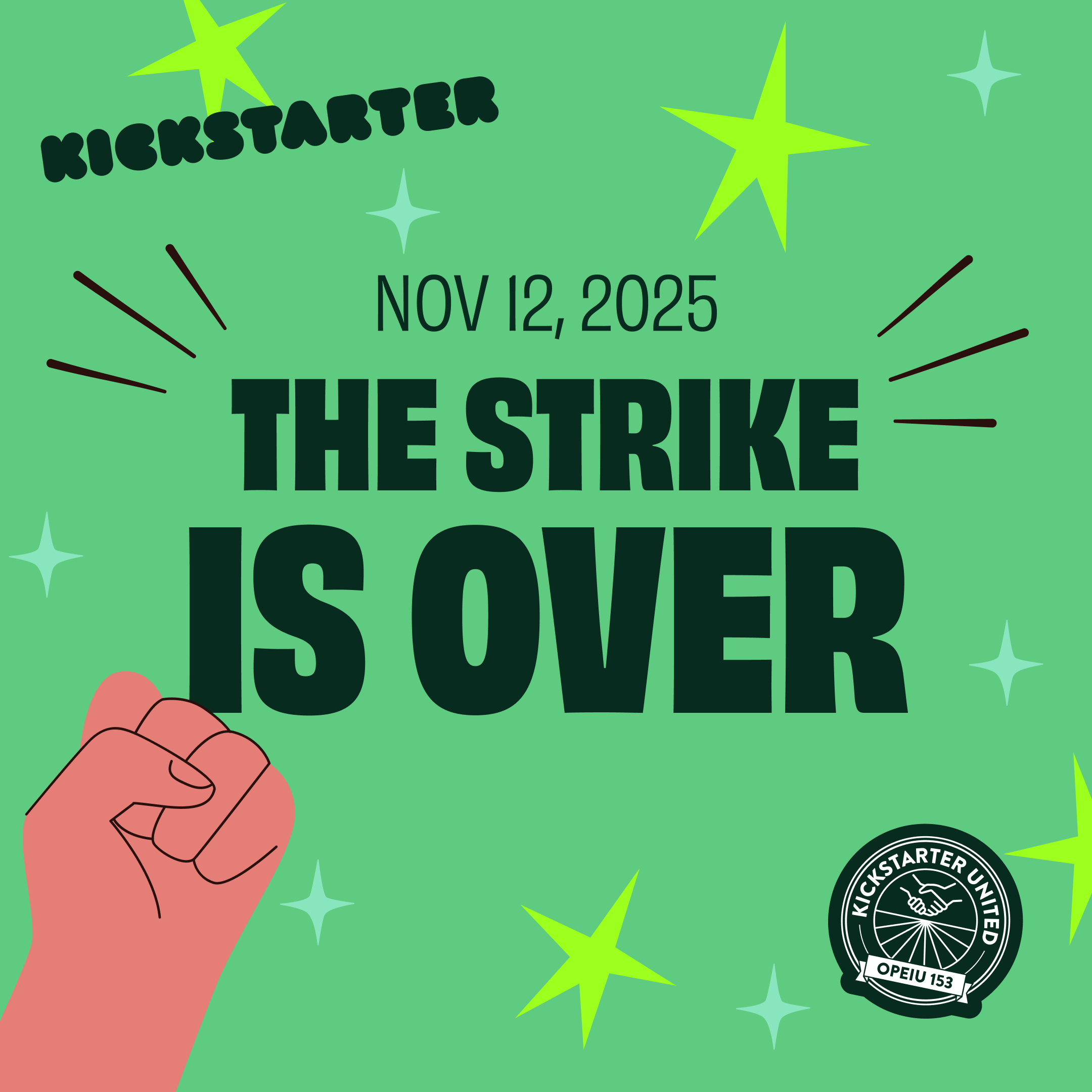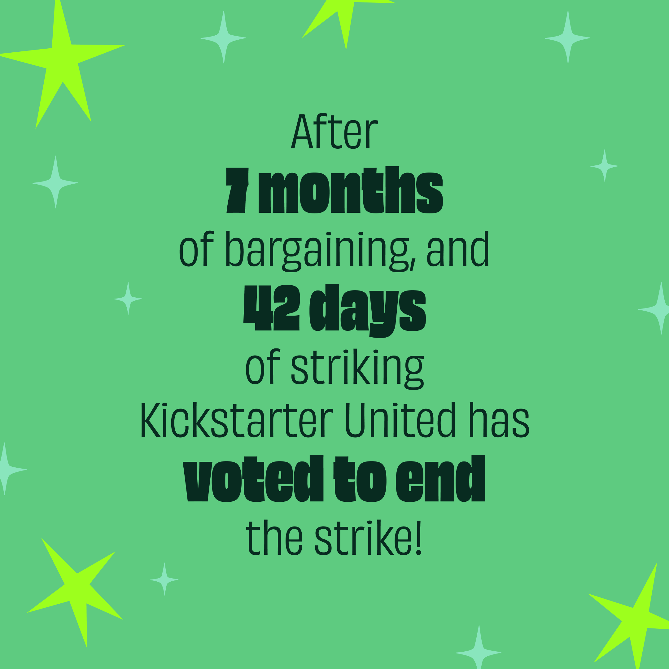 After 7 months of bargaining, and 42 days of striking Kickstarter United has voted to end the strike