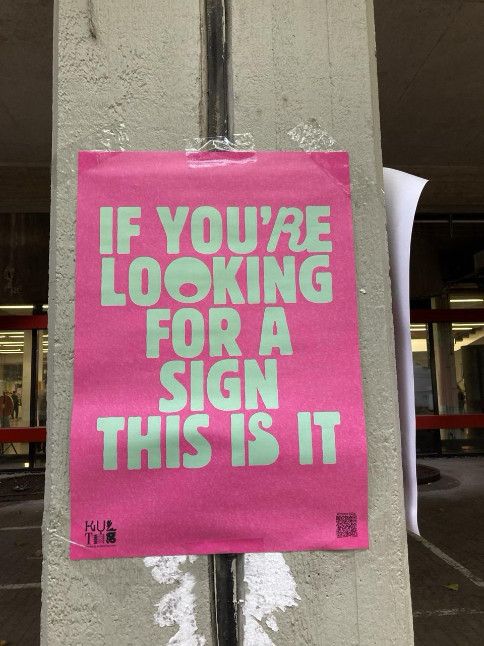 IF YOU'RE LOOKING FOR A SIGN THIS IS IT , green letters on pink poster