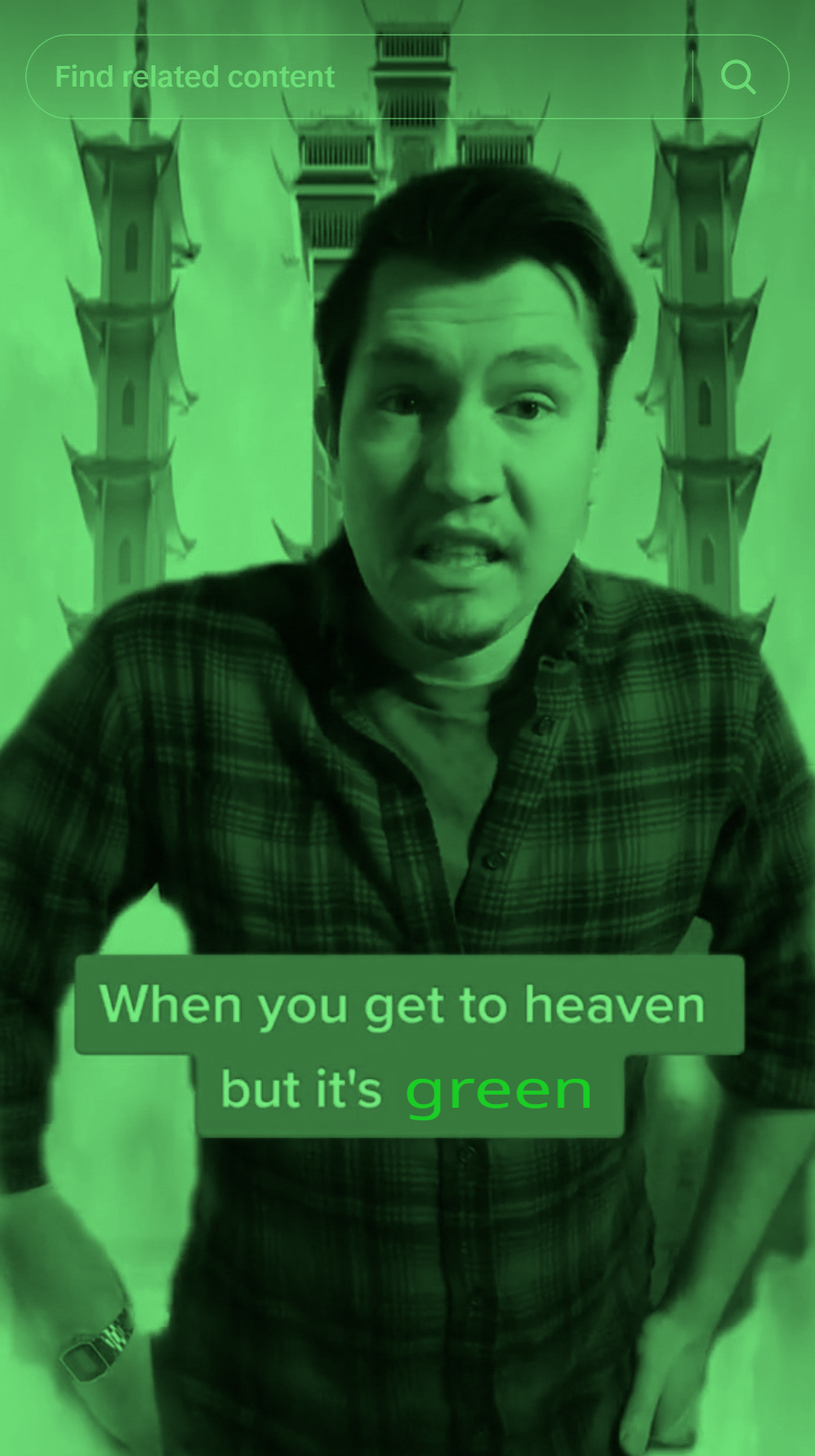 alt tiktok of a guy in heaven with the caption "when you get to heaven but it's green" tiktok of a guy in heaven with the caption "when you get to heaven but it's green"