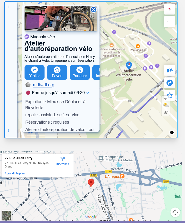 L'association Mieux se Déplacer à Bicyclette IDF nous a ajouté a son site pour localiser l'atelier.