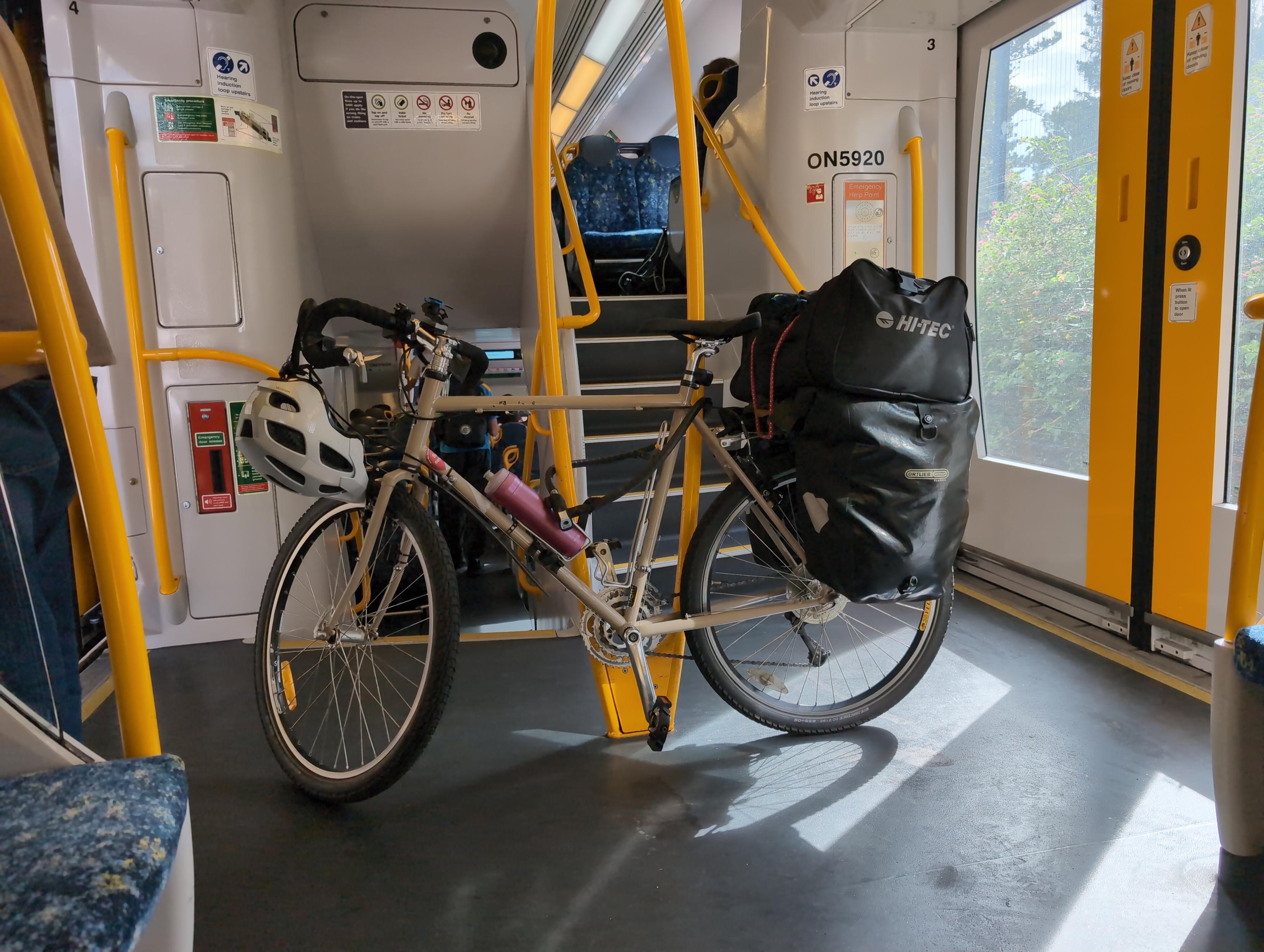 A beautiful cycling day. Pleasantly cool with light drizzle. Rather large hills though, and I suspect I have triggered some tendonitis in the knees.
