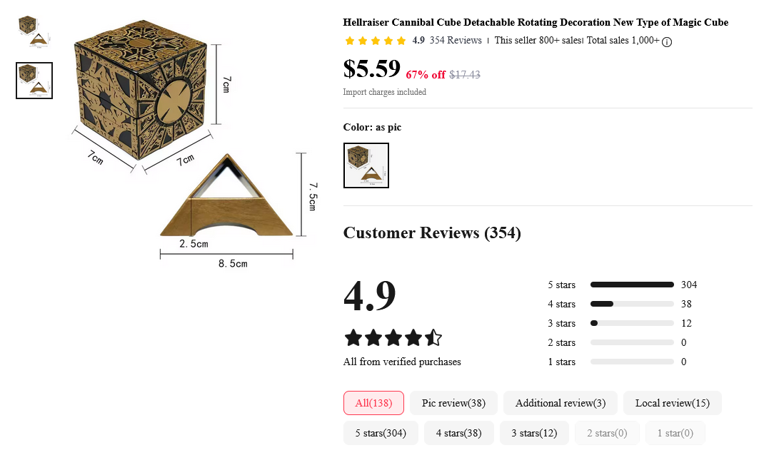 Oh hey, they're selling the Lament Configuration from Hellraiser on Aliexpress. That seems like a fun and wise thing to purchase!