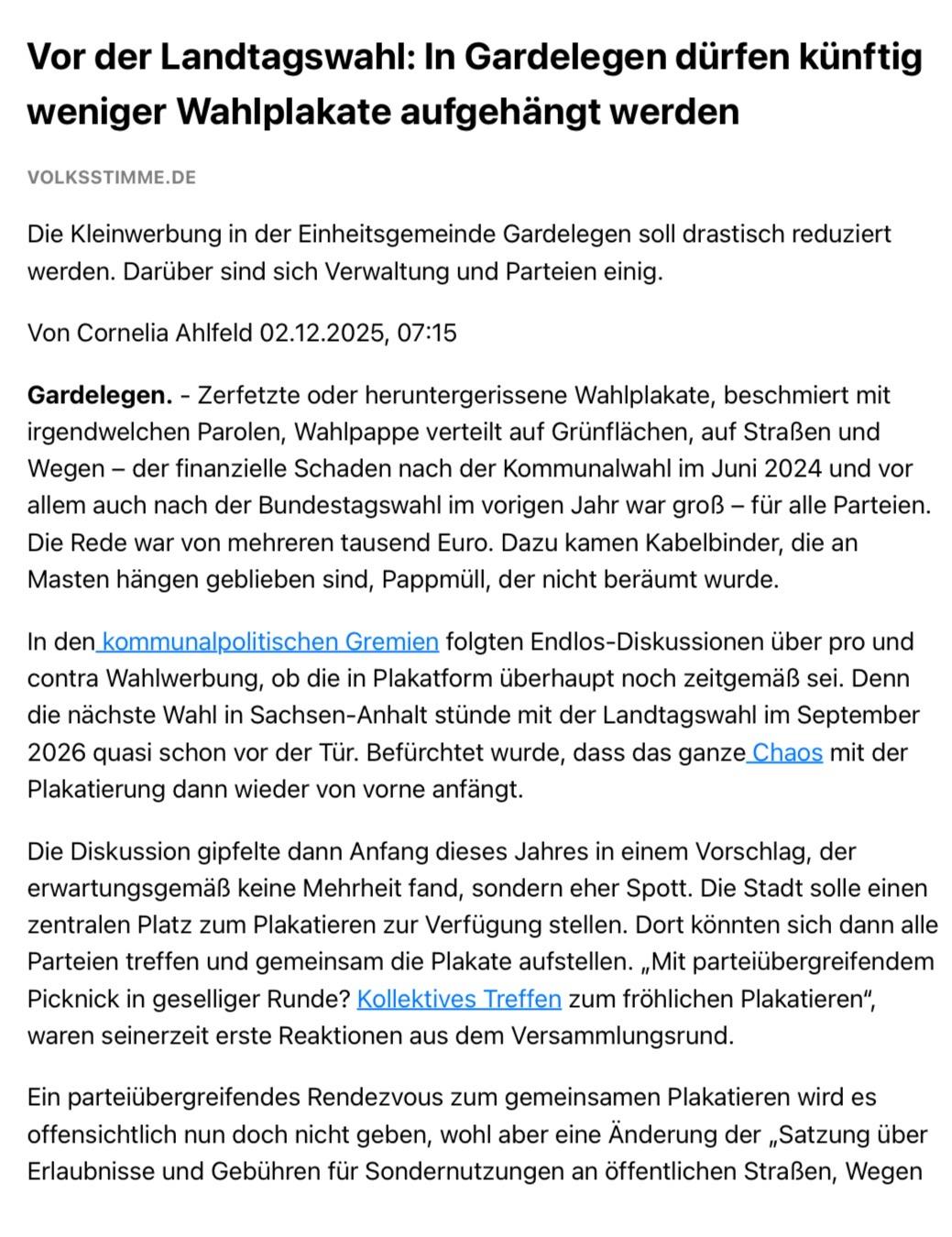 Nun soll der Stadtrat beschließen, dass zur kommenden #Landtagswahl nur noch 64 Kleinplakate pro Partei oder Wählergemeinschaft in der Stadt zulässig sind. Die Zahl der Großplakate hingegen bleibt unverändert bei fünf pro Akteur. [1/2]