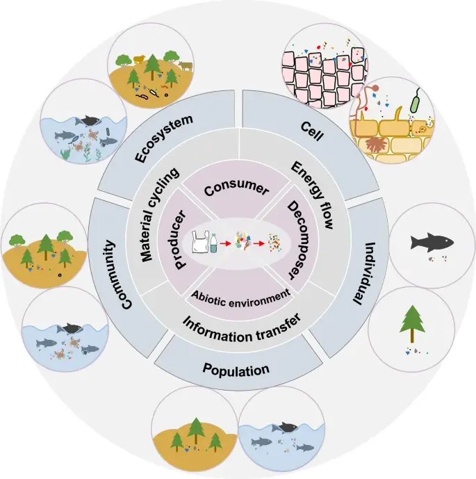 The final panel reveals the commonality: a large, generic human silhouette filled with the text "MICRO PLASTICS".