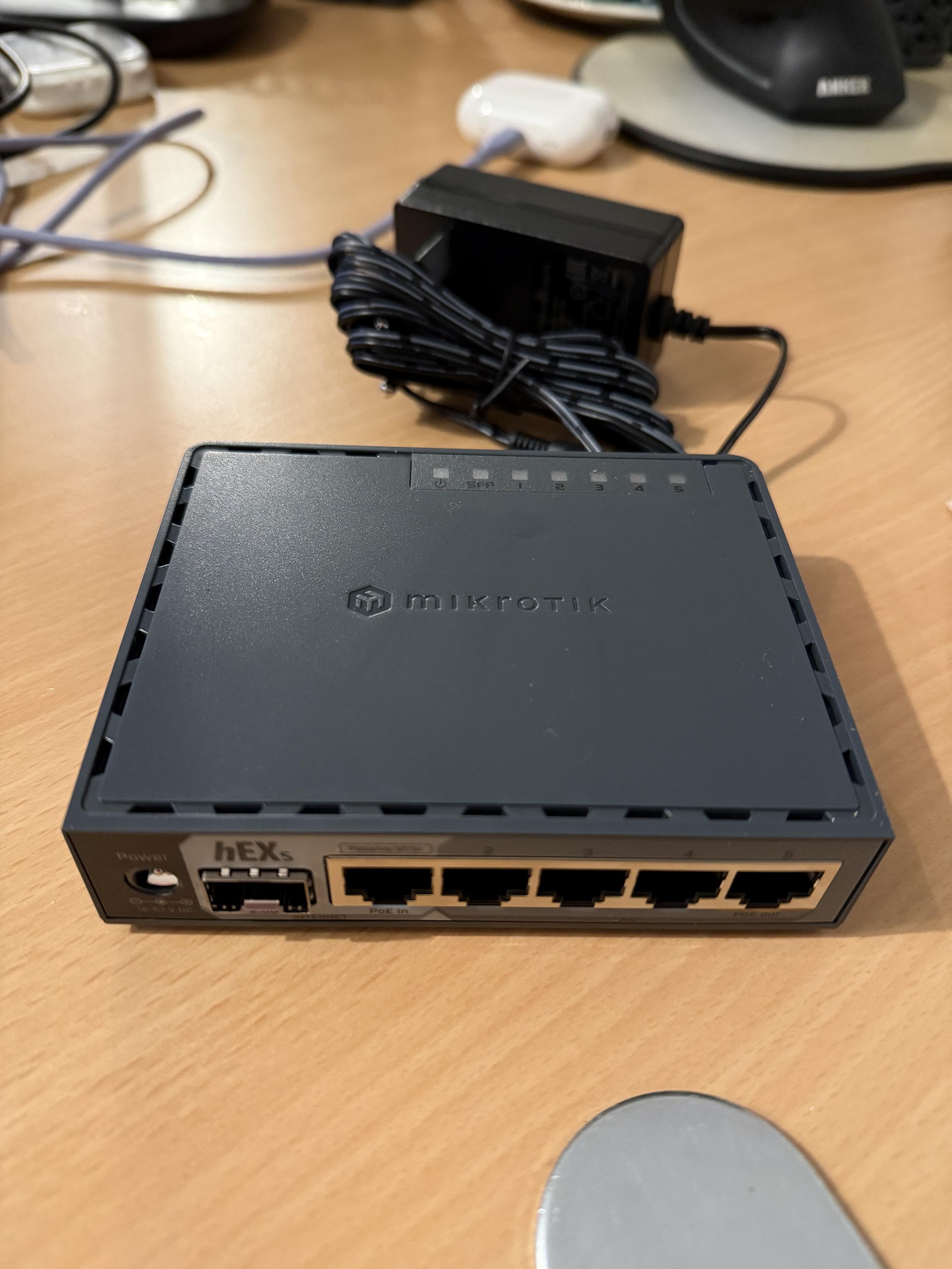 A large cardboard shipping box filled with multiple Mikrotik product packages. Most of the boxes are labeled “RB5009 series” with the Mikrotik logo and a geometric patterned design. Additional Mikrotik boxes, including some from the “Cloud Router Switch series”, are partially visible underneath. The boxes are neatly arranged and are new and unopened.