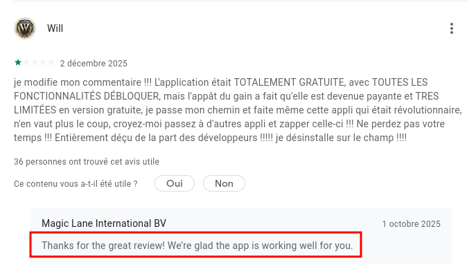 Ah ouais avec leur dernière mise à jour, MagicEarth a très bien réussi à cramer sa note sur le magasin GooglePlay. 👌