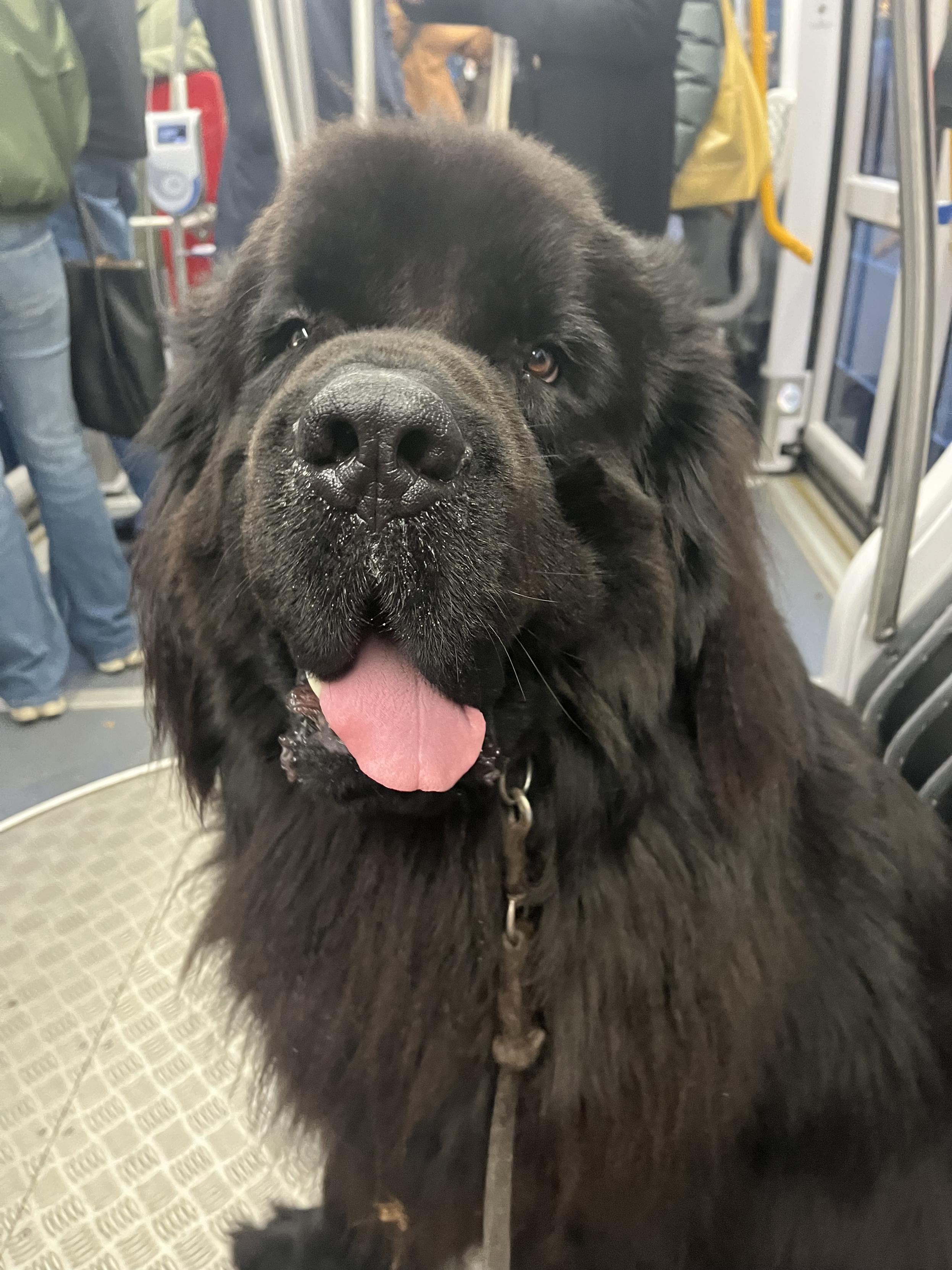 Odin the Newfie very pleased by a surprise tram journey