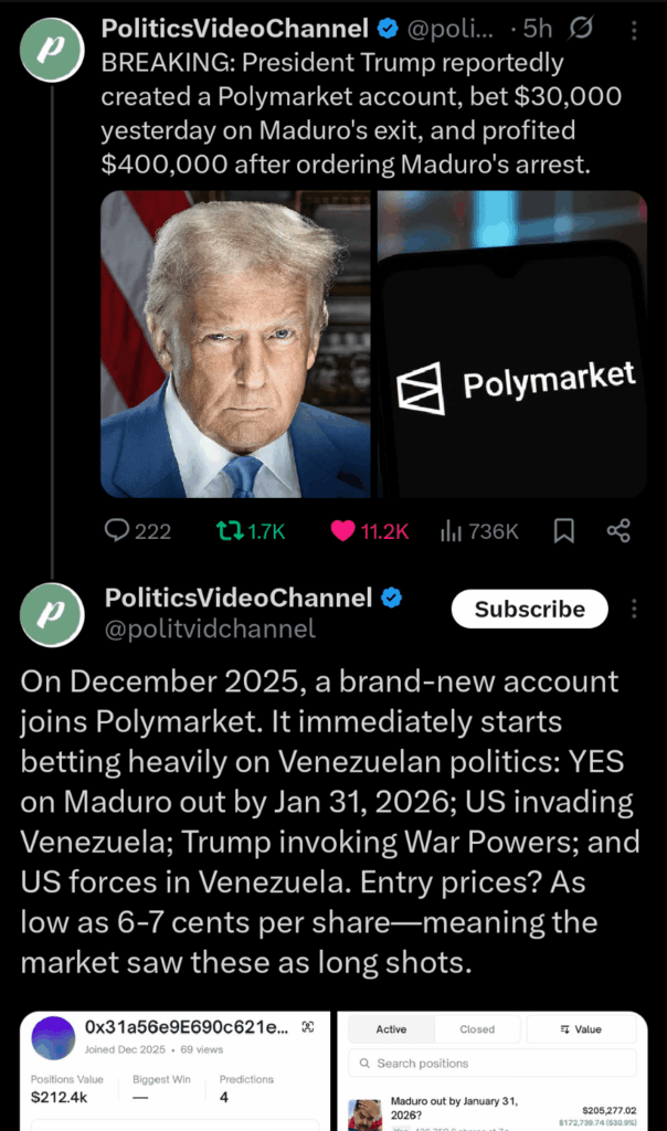 https://www.usluck.com/747241/someone-bet-on-poly-market-that-maduro-was-going-to-be-taken-out/ Someone bet on poly market that Maduro was going to be taken out #Tweets #Twitter