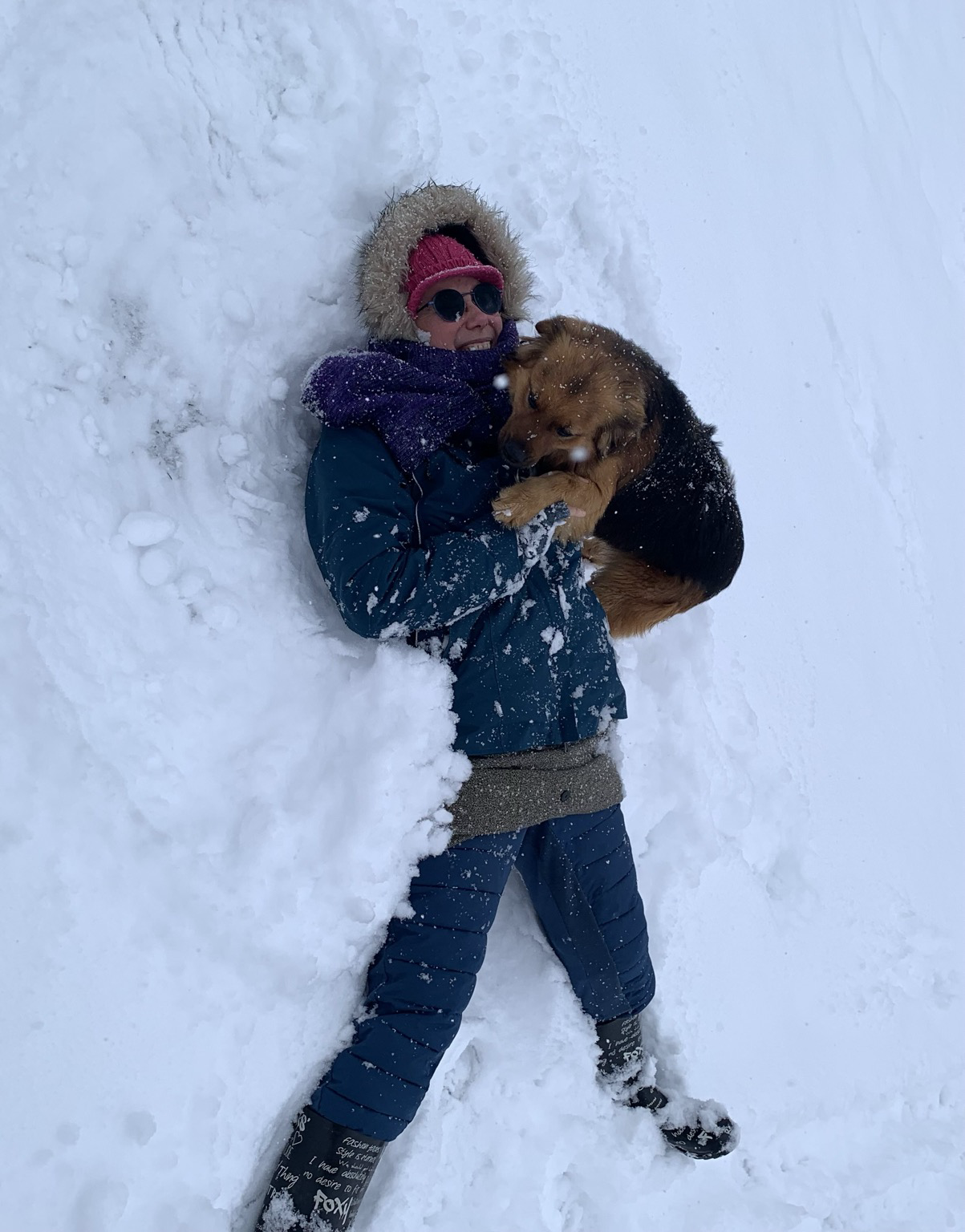 #SilentSunday near #LikaLodge : trees & roads are covered in snow! All the sounds are gone! All the views are gone too - mountains can’t be seen! Only rosehip & Rocky & Bella :) #DogsOfMastodon & faint traces of the steps in the snow …