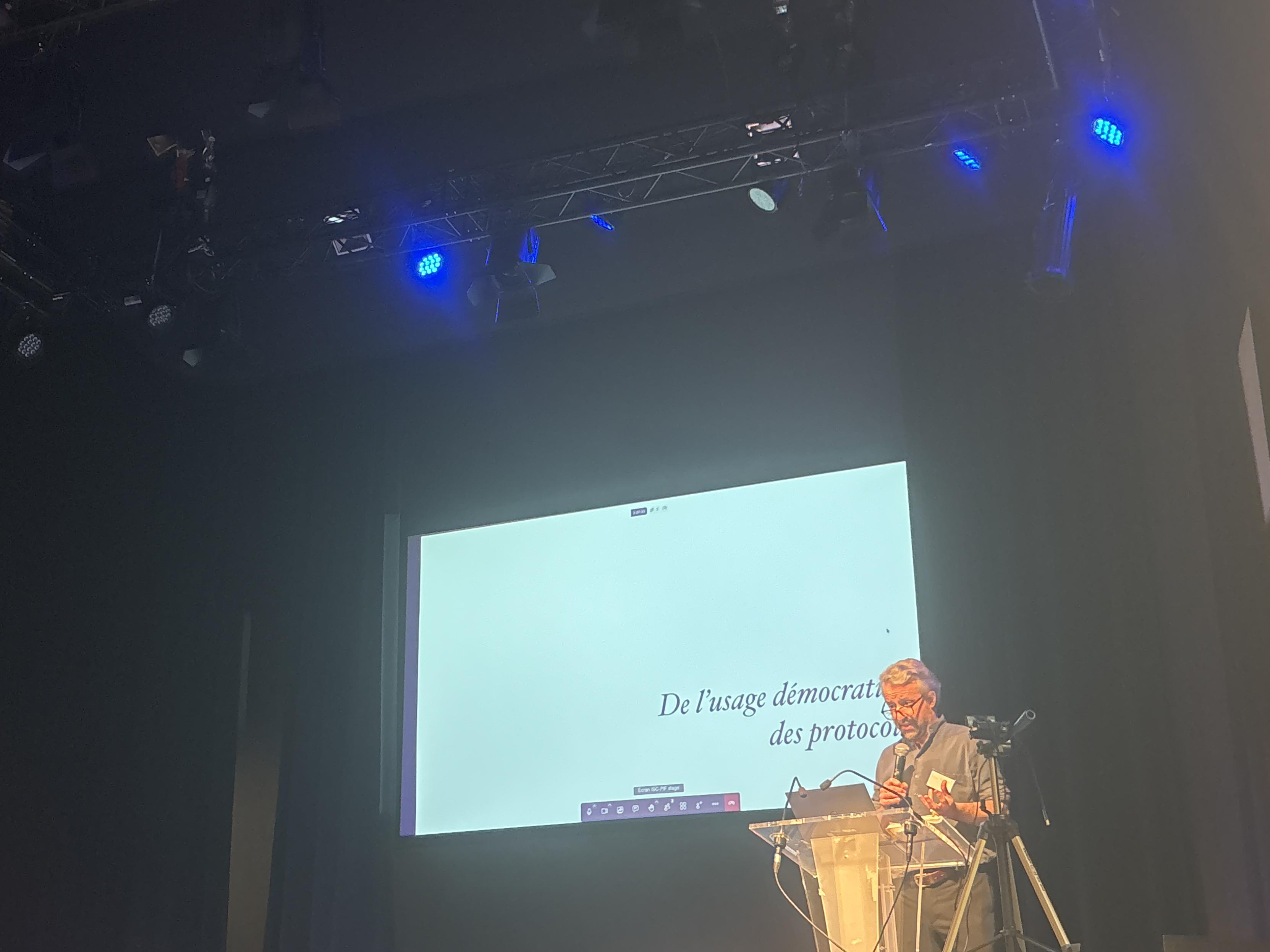 Benoît Piédallu nous parle communs numériques de l’éducation. « Que disent les textes et notamment les textes stratégiques ? 1. Les élèves doivent avoir une éducation numérique à la souveraineté. 2. Hébergement souverain des services numériques et notamment educonnect. Nous ajoutons les logiciels libres, seule façon d’être souverains sur le devenir du logiciel. Et nous allons plus loin avec les communs numériques. »