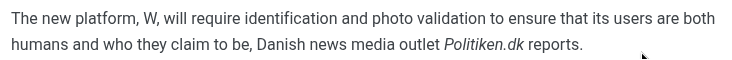 The new platform, W, will require identification and photo validation to ensure that its users are both humans and who they claim to be, Danish news media outlet Politiken.dk reports.