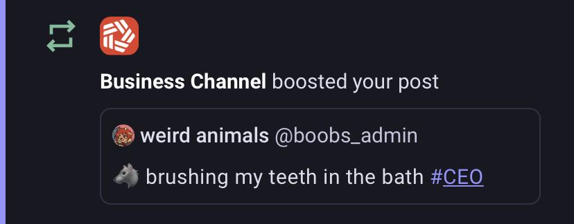 alt an account called 'Business Channel' immediately boosted my post because it had #CEO in it an account called 'Business Channel' immediately boosted my post because it had #CEO in it