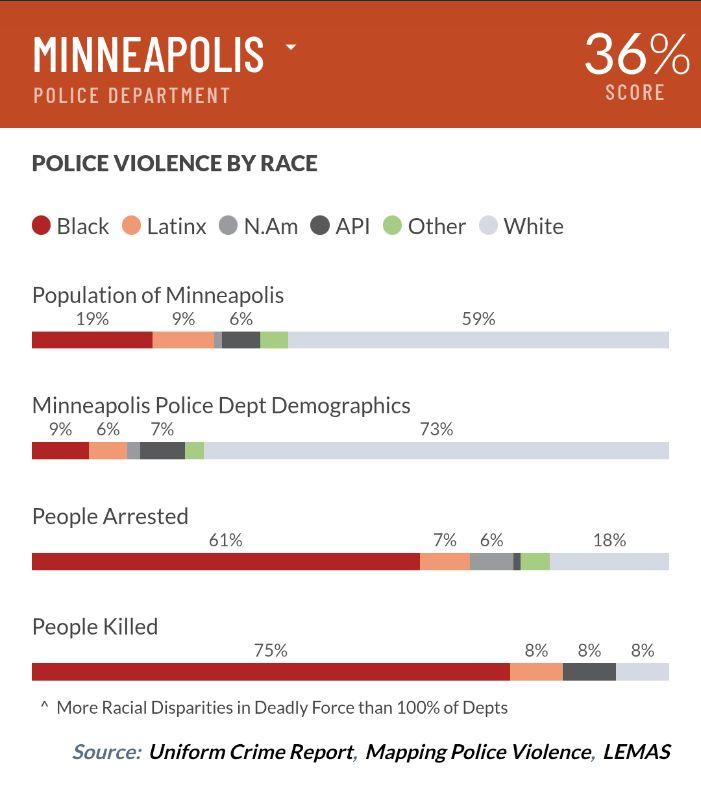 I don't want to hear that in the US, a nation famous for its violently racist cops, that Minneapolis is in the worst 1% of all police depts.