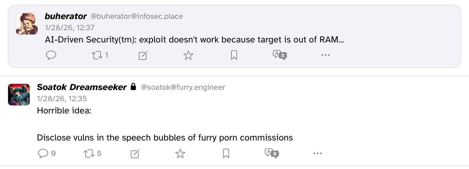 @soatok These two posts were adjacent in my timeline, and it made me stop and ponder whether the RAM was a noun or a verb.