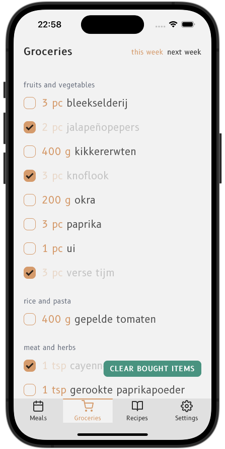 my bespoke meal planning app that helps you manage, plan, shop, prepare and compose your favourite go-to recipes into varied weekly menus.
