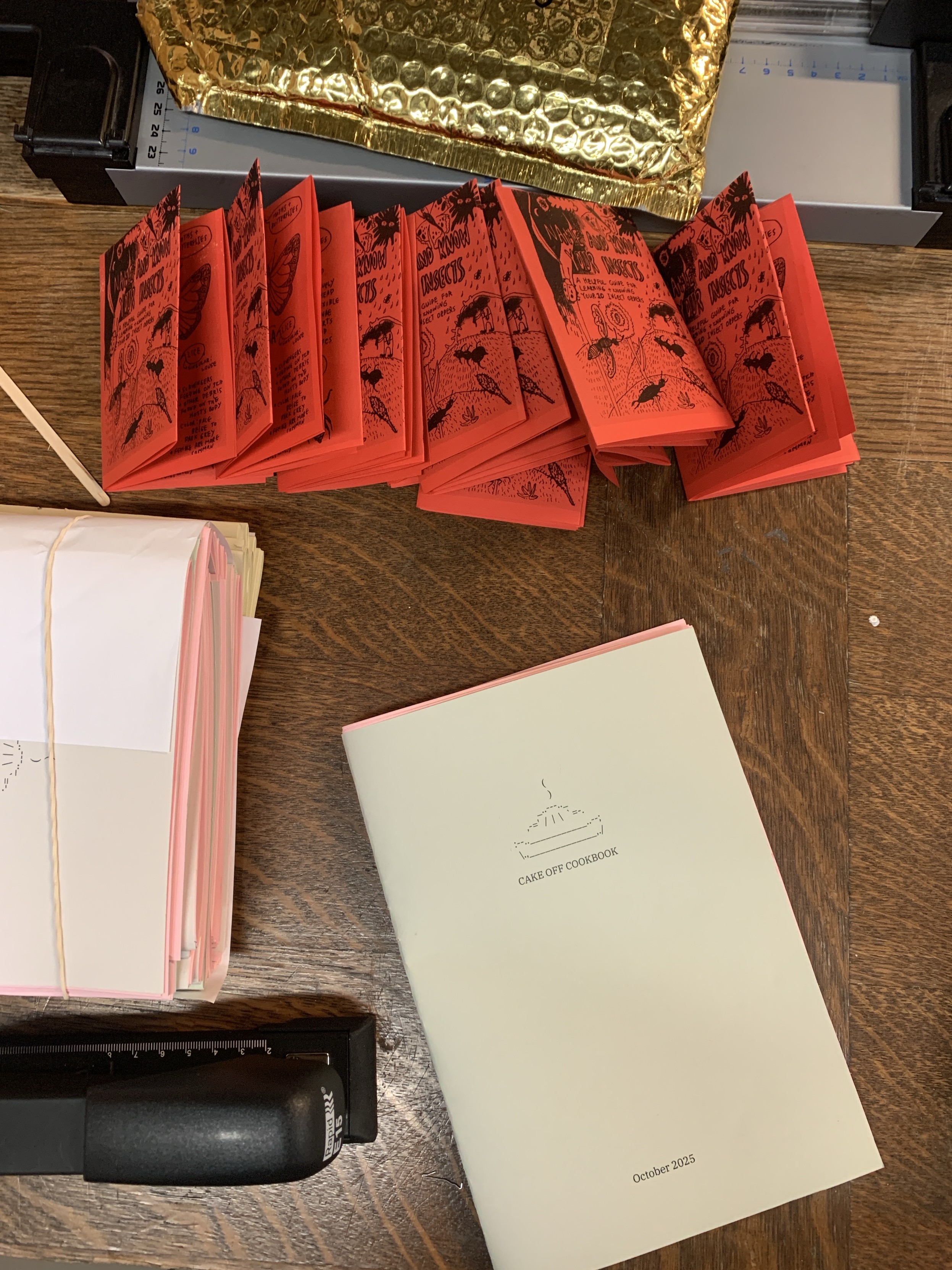 Cake off Cook book with a simple ascii art cover and a bunch of other free zines about insects i found on a free zine archive