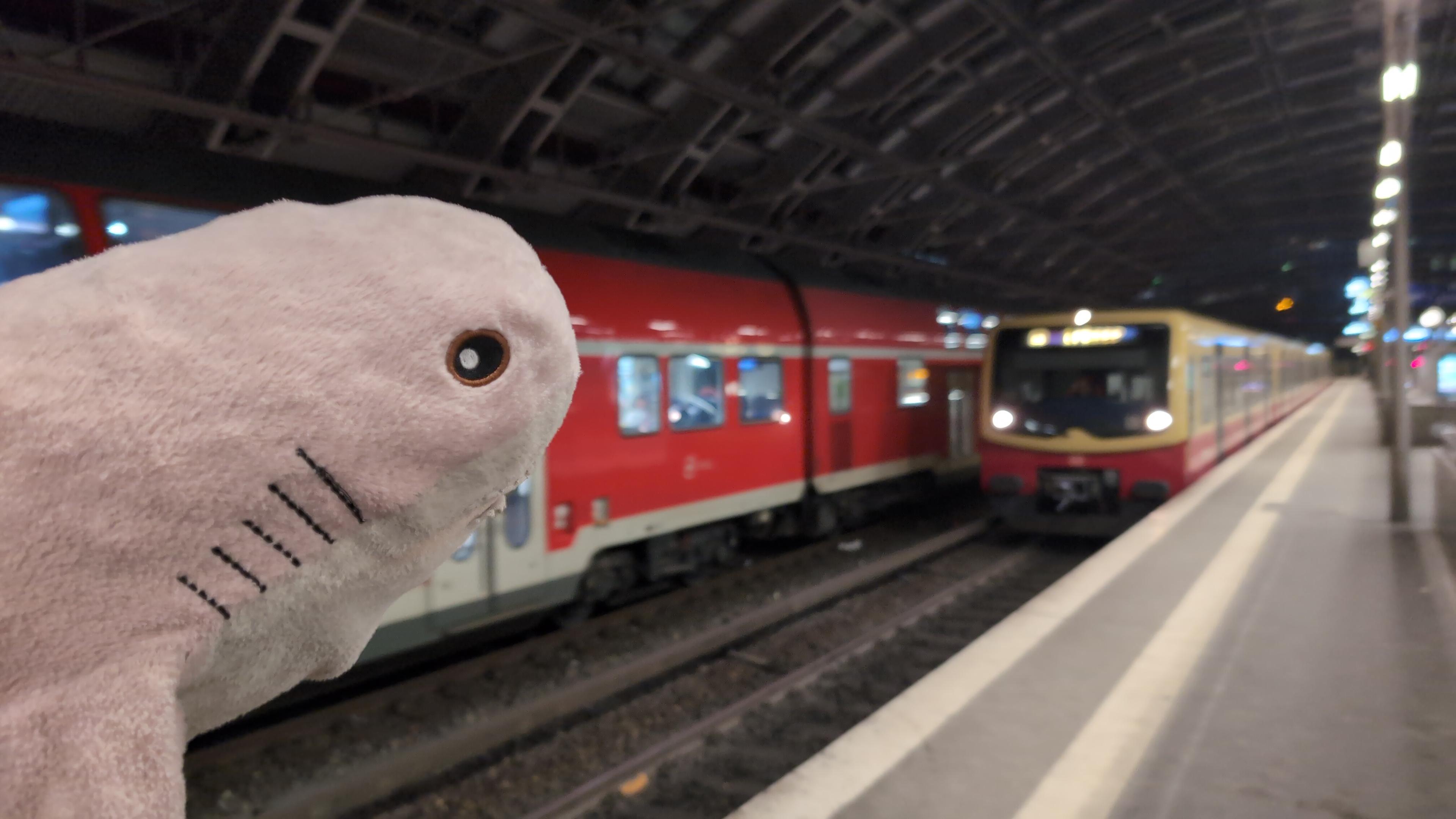 Rosåhaj looking at a Berlin S-Bahn train arriving in Berlin Ostbahnhof.