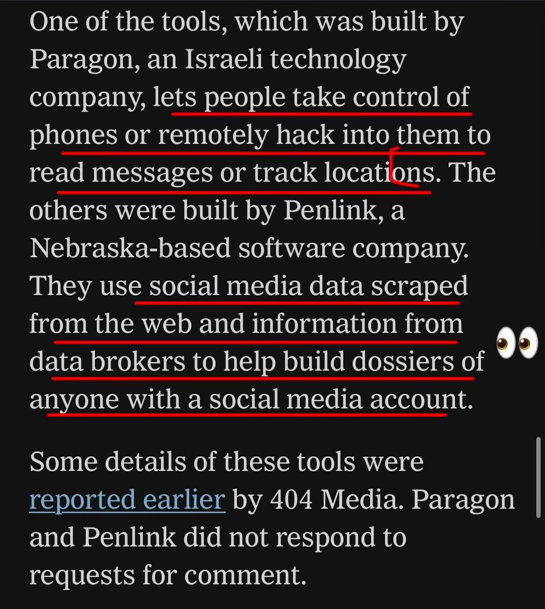 ICE is using two facial recognition programs in Minnesota, they said, including one made by the tech company Clearview AI and a newer program, Mobile Fortify. The agency is also using cellphone and social media tools to monitor people's online activity and potentially hack into phones. And agents are tapping into a database, built by the data analytics company Palantir, that combines government and commercial data to identify realtime locations for individuals they are pursuing, the current and former officials said.