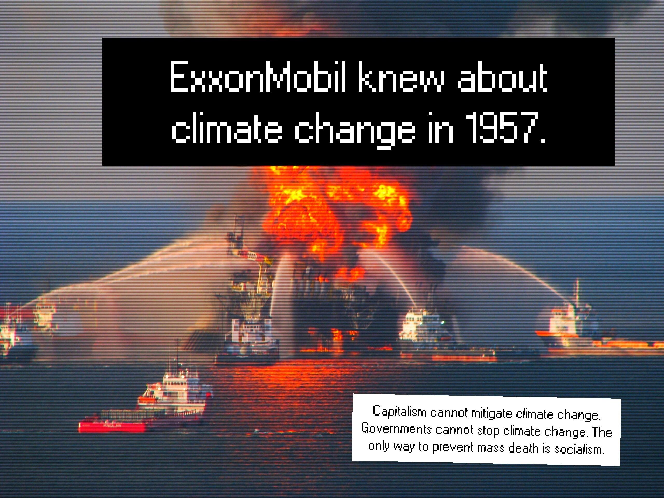 alt ExxonMobil knew aboutclimate change in 1957.Capitalism cannot mitigate climate change.Governments cannot stop climate change. Theonly way to prevent mass death is socialism. ExxonMobil knew aboutclimate change in 1957.Capitalism cannot mitigate climate change.Governments cannot stop climate change. Theonly way to prevent mass death is socialism.