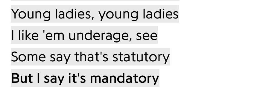 cool daddy cool lyrics: Young ladies, young ladies i like em underage, see some say that’s statutory but i say it’s mandatory