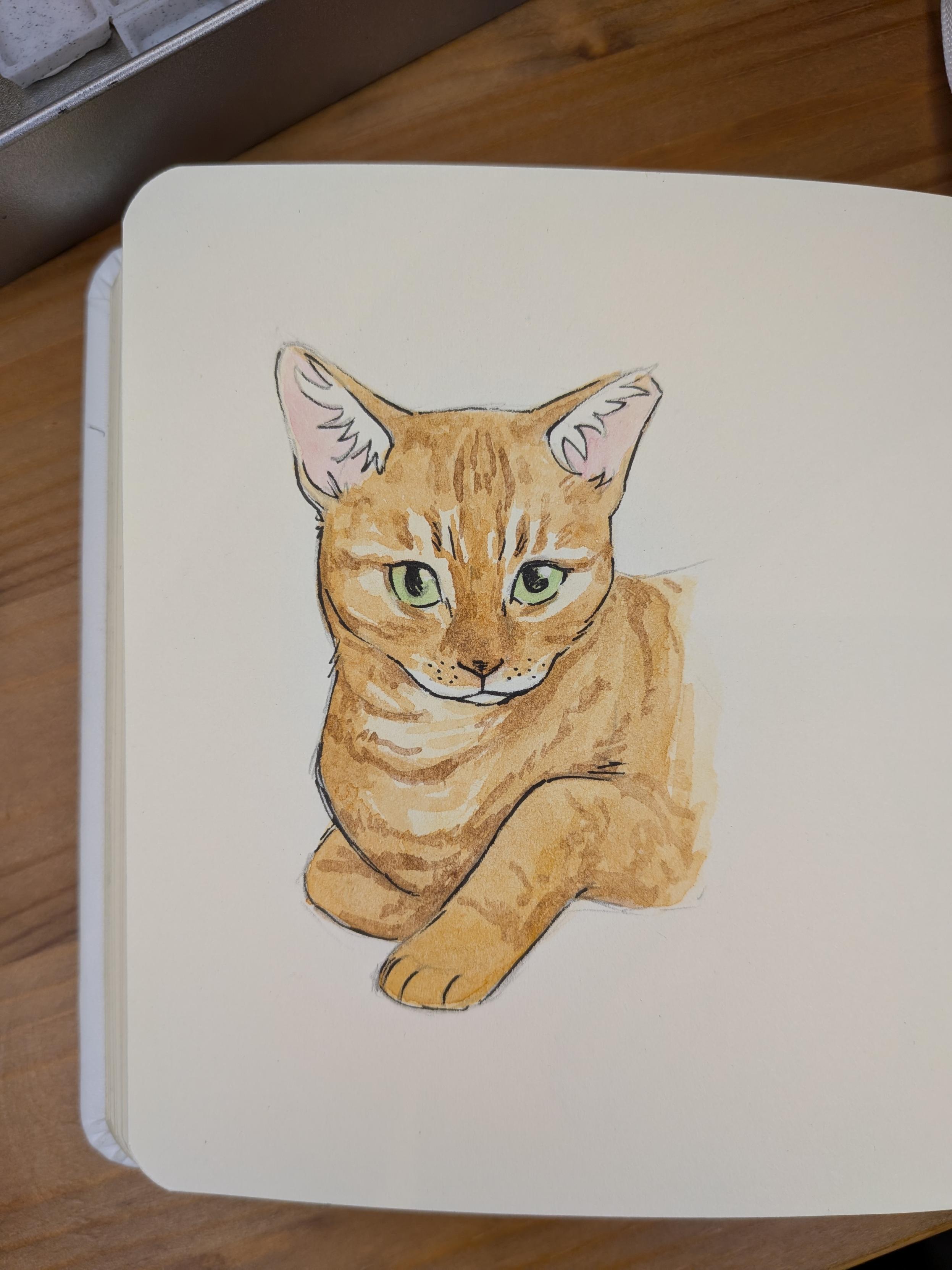 alt Watercolour and ink drawing of an orange tabby cat. Watercolour and ink drawing of an orange tabby cat.