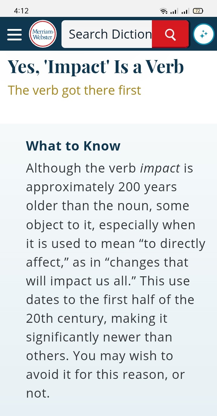 And I reckon that the use of impact in that context follows on from people struggling to use affect and effect correctly. It's "safer" somehow to substitute "impact".