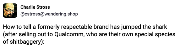 How to tell a formerly respectable brand has jumped the shark (after selling out to Qualcomm, who are their own special species of shitbaggery):