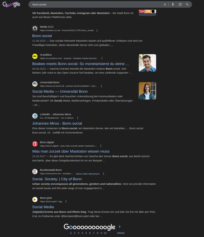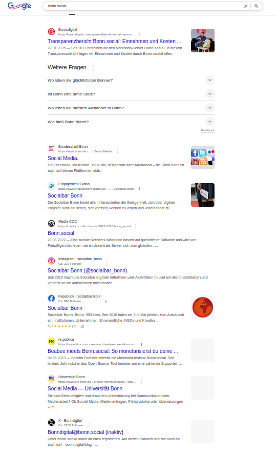 Alle Erbebnisse verweisen auf bonn.social sogar mi Bild von Sascha :-)