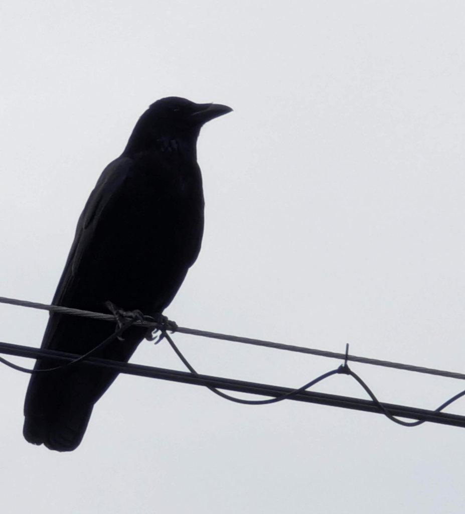 Ms Crow on a utility cable, following me to the nearest parking lot.