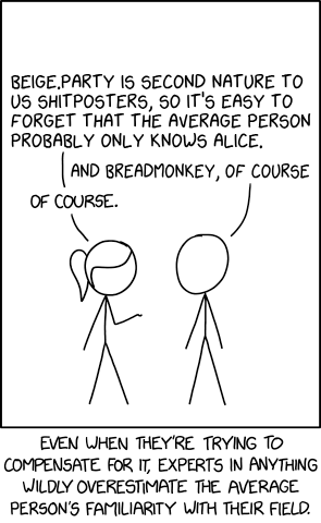 @laprice We can try assuming no knowledge at all. Starting from kitchen basics, with the intention of finding a common starting point and building out from there. But then we take the risk people might get bored, or worse, feel patronised. In discussing anything with anyone, one walks a constant tightrope between accusations of being elitist, or boring/ arrogant.