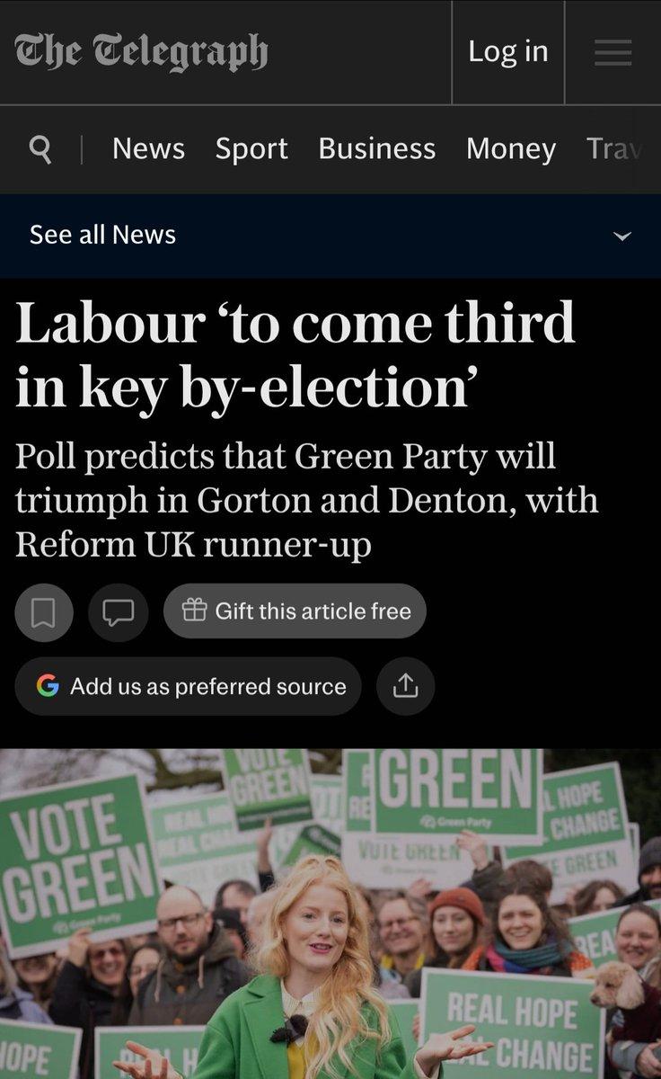 You'll appreciate most of your letter is out of date now, but I'm sure you'll have seen the poll that came out that puts us in first place and Reform in second. Labour are a distant third and it's now clearer than that your party cannot win in Gorton and Denton,