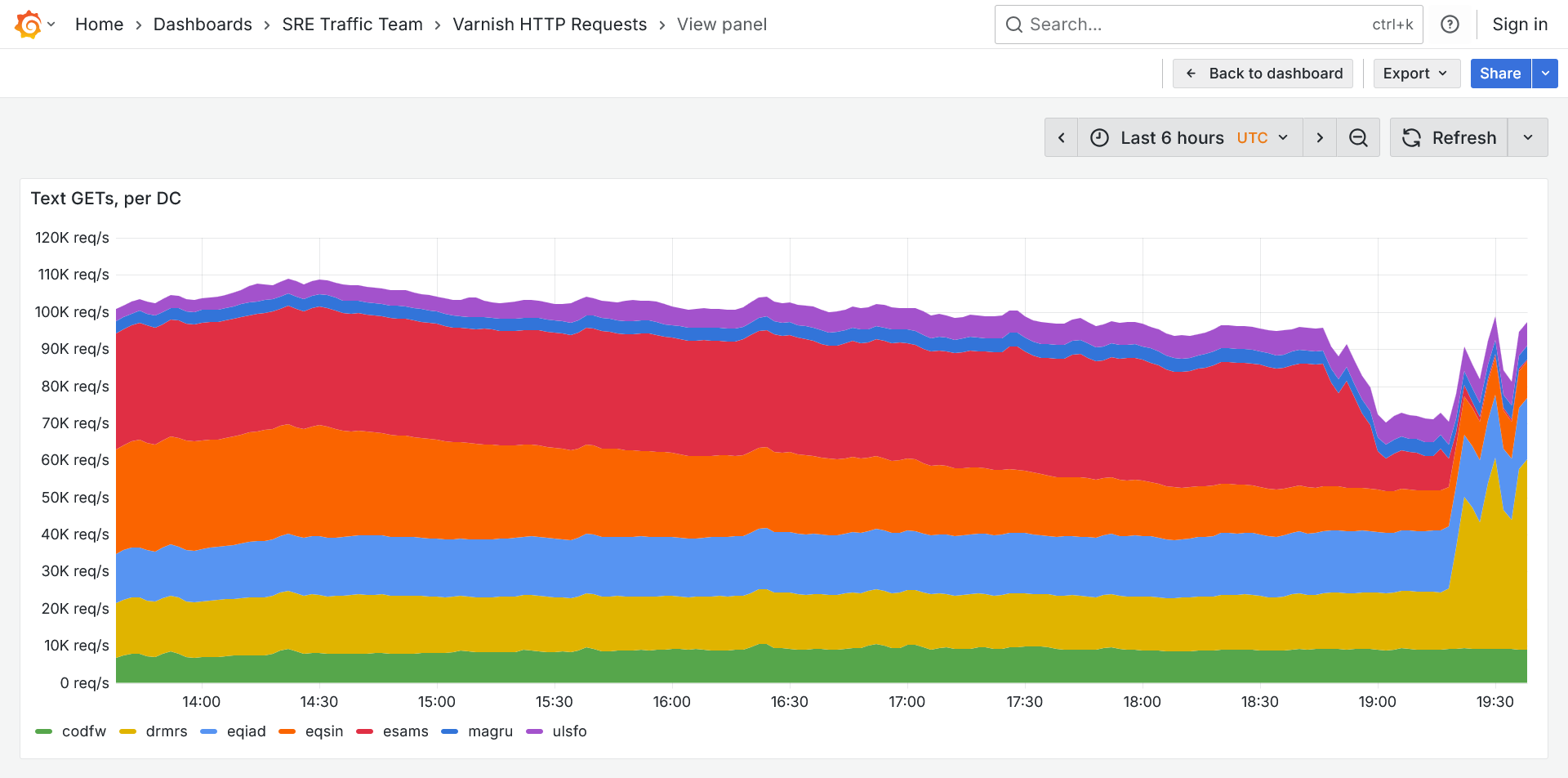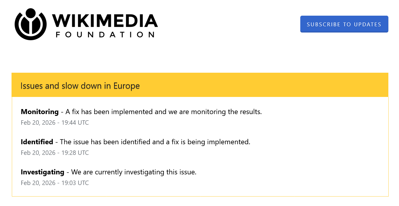 le datacenter Wikimedia à Amsterdam semble avoir un problème (avec une IP de France métropolitaine, vous consultez le datacenter marseillais) https://grafana.wikimedia.org/d/000000180/varnish-http-requests?orgId=1&from=now-6h&to=now&timezone=utc&viewPanel=panel-4