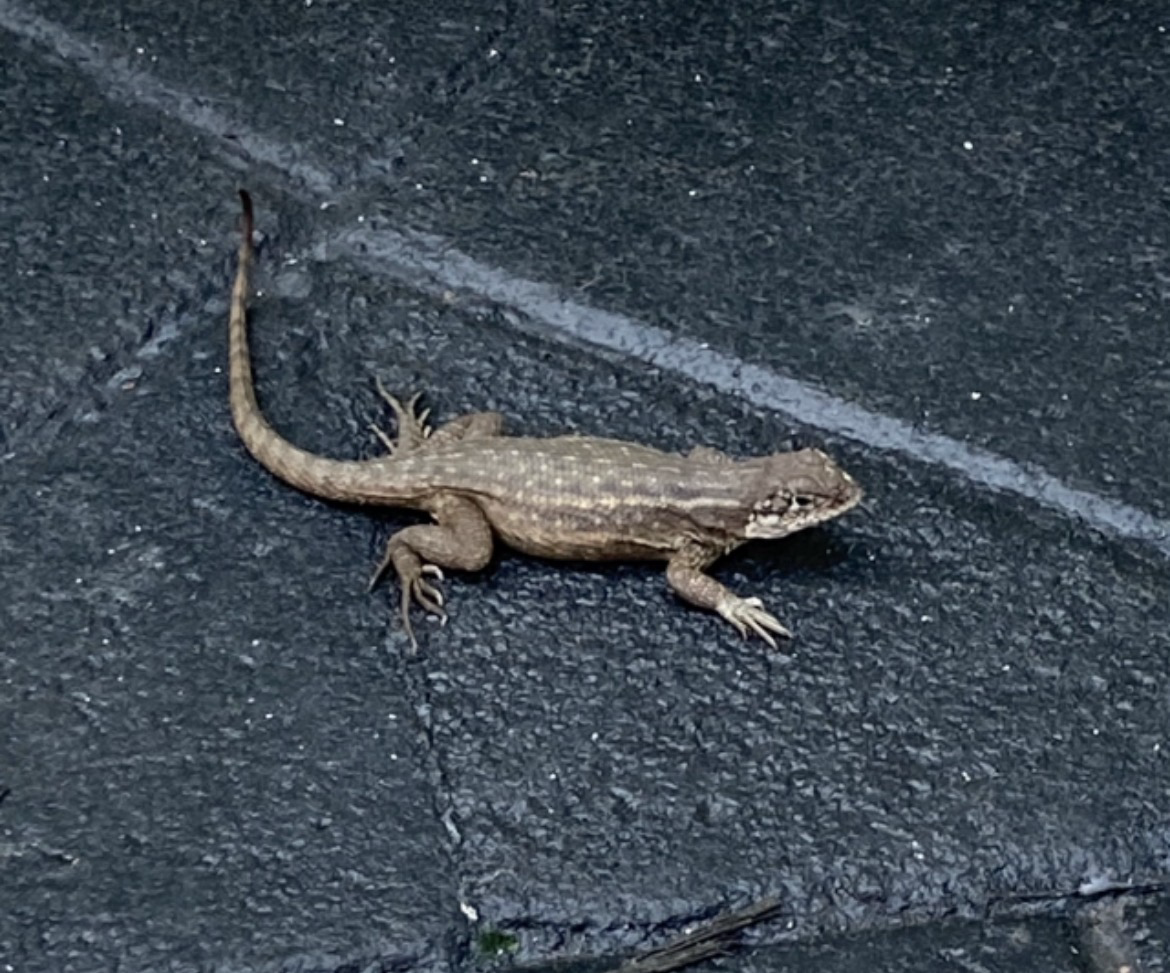 I don’t have a sexy frog photo to share, but I do have this photo. I took this in 2023 when we were in Miami. By the snack bar in the pool area, I noticed that someone had dropped a pickle. Then the pickle moved. 😂 I know it’s hard to tell from the photo, but he was a pickle-sized lizard, I promise you.