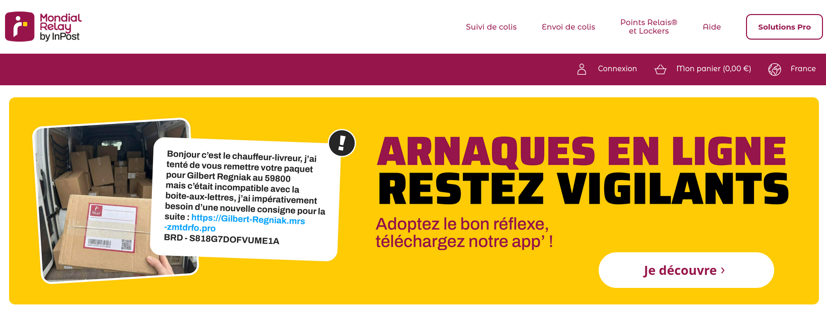 Ah voilà, Mondial Relay a fait les choses en grand pour expliquer le #phishing, au moins ça ne se loupe pas.